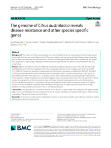 The genome of Citrus australasica reveals disease resistance and other species specific genesExport / Share PlumX View Altmetrics View AltmetricsNakandala, U., Furtado, A., Masouleh, A. K., Smith, M. W., Williams, D. C. and Henry, R. J. (2024) The genome of Citrus australasica reveals disease resistance and other species specific genes. BMC Plant Biology, 24 (1), 260. https://doi.org/10.1186/s12870-024-04988-8