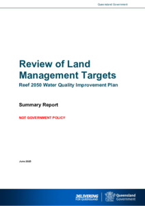 Review of land management targets : Reef 2050 Water Quality Improvement Plan : summary reportExport / Share Higham, W., McCosker, K., Brooks, E., Northey, A., Humphreys, P., Hassett, R., Keuhne, G., Llewellyn, R. and Star, M. (2025) Review of land management targets : Reef 2050 Water Quality Improvement Plan : summary report. Technical Report. State of Queensland.