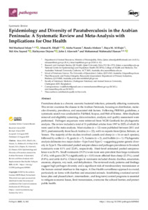 Article Link: https://doi.org/10.3390/pathogens14090841 AbstractParatuberculosis is a chronic zoonotic bacterial infection, primarily affecting ruminants. This review examines the disease in the Arabian Peninsula, focusing on distribution, molecular diversity, prevalence, and associated risk factors. Following PRISMA guidelines, a systematic search was conducted in PubMed, Scopus, and Web of Science. After duplicate removal and eligibility screening, data extraction, analysis, and quality assessment were performed. Pathogen sequences were retrieved from NCBI GenBank for phylogenetic analysis. The review included a total of 31 published articles from 1997 to 2025, of which 26 were used in the meta-analysis. Most studies (n = 12) were published between 2011 and 2015, predominantly from Saudi Arabia (n = 22), with no reports from Qatar, Bahrain, or Yemen. The majority of the studies involved camels and sheep (n = 16 on each species), followed by cattle (n = 9), goats (n = 7), humans (n = 2), and buffalo (n = 1). Phylogenetic analysis delineates two major clades—Type S and Type C—suggesting greater genetic diversity in Type S. The estimated pooled seroprevalence and pathogen prevalence in livestock ruminants were 8.1% and 22.4%, respectively. Herd-level estimated pooled seroprevalence was 26.9%. Small ruminants (19.3%) were more sero-prevalent than large ruminants (7.4%), with goats (28.7%) significantly (p < 0.01) more affected than sheep (21.5%), camel (9.8%), and cattle (6.6%). Clinical signs in ruminants included chronic diarrhea, emaciation, anorexia, alopecia, wry neck, and dehydration. The reviewed study patterns and findings suggest high pathogen diversity and a significant risk of transboundary transmission at the human–animal interface in this region. A One Health surveillance approach is crucial, particularly on farms with diarrheic and emaciated animals. Establishing a national surveillance plan and phased (short-, intermediate-, and long-term) control programs is essential to mitigate economic losses, limit transmission, overcome the cultural barrier, and protect public health.