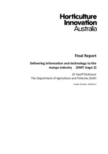 Delivering information and technology to the mango industry (DMT stage 2)Export / Share Dickinson, G. R. (2015) Delivering information and technology to the mango industry (DMT stage 2). Project Report. Horticulture Innovation Australia.
