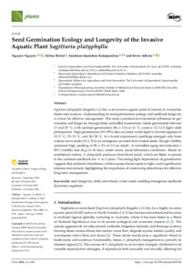Seed Germination Ecology and Longevity of the Invasive Aquatic Plant Sagittaria platyphyllaExport / Share PlumX View Altmetrics View AltmetricsNguyen, N., Bickel, T. O., Kalaipandian, S. and Adkins, S. (2025) Seed Germination Ecology and Longevity of the Invasive Aquatic Plant Sagittaria platyphylla. Plants, 14 (20). p. 3138. https://doi.org/10.3390/plants14203138