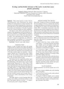 Ecology and herbicide tolerance of the native weeds that cause pimelea poisoningExport / Share Silcock, R. G., Mann, M. B. and Morrissy, K. A. (0200) Ecology and herbicide tolerance of the native weeds that cause pimelea poisoning. In: 16th Australian Weeds Conference, 18-22 May, 2008, Cairns, QLD.