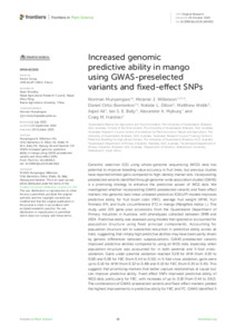 Increased genomic predictive ability in mango using GWAS-preselected variants and fixed-effect SNPsExport / Share PlumX Munyengwa, N., Wilkinson, M. J., Ortiz-Barrientos, D., Dillon, N. L., Webb, M., Ali, A., Bally, I. S.E., Myburg, A. A. and Hardner, C. M. (2025) Increased genomic predictive ability in mango using GWAS-preselected variants and fixed-effect SNPs. Frontiers in Plant Science, 16 . https://doi.org/10.3389/fpls.2025.1664012