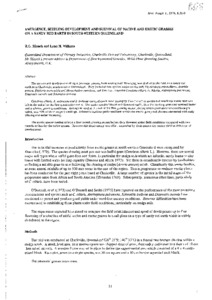 Article Link: https://doi.org/10.1071/RJ9760031 AbstractThe growth and development of eight perennial grasses, from sowing until flowering, was studied in the field on a sandy red earth near Charleville, south-western Queensland. They included four species native to this soil, Thyridolepis mitchelliuna, Aristida armata, Digitaria ammophila and Monachather paradoxa, and four exotic species Cenchrus ciliuris cv. Biloela, Anthephora pubescens, Eragrostis curvula and Schmidtia bulbosa. Cenchrus ciliaris, A. pubescens and S. bulbosa emerged much more promptly than the other species and much less viable seed was left in the soil after the fist germination event. The native species tillered and flowered earlier than the exotic grasses and survived better under adverse growing conditions. Average survival at the end of the first growing season, during which good seasonal conditions pre- vailed, was 30% of the emergent seedlings. Schmidtia bulbosa performed best within the exotic group and this was associated with early tillering and earlier flowering. The exotic species needed at least a four month growing season before they flowered under field conditions compared with two months or less for the native grasses. However this disadvantage was offset somewhat by their greater dry matter yield at this stage of development.