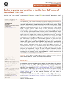 Decline in grazing land condition in the Northern Gulf region of Queensland 1990–2018Export / Share PlumX Shaw, K.A., Rolfe, J. W., Beutel, T. S., English, B. H., Gobius, N. R. and Jones, D.A. (2005) Decline in grazing land condition in the Northern Gulf region of Queensland 1990–2018. The Rangeland Journal, 47 (6). https://doi.org/10.1071/RJ24011
