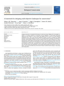 A framework for designing multi-objective landscapes for conservationExport / Share PlumX Chauvenet, A. L.M., Renwick, A. R., Possingham, H. P., Adams, V. M., McGowan, J., Gagic, V. and Schellhorn, N. A. (2026) A framework for designing multi-objective landscapes for conservation. Biological Conservation, 315 . p. 111717. https://doi.org/10.1016/j.biocon.2026.111717