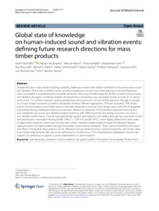 Global state of knowledge on human-induced sound and vibration events: defining future research directions for mass timber productsExport / Share PlumX Faircloth, A., Karampour, H., Hamm, P., Müller, T., Pavic, A., Reynolds, P., Gilbert, B. P., Schoenwald, S., Huang, H., Gronquist, P., Ruf, J., Brancheriau, L. and Kumar, C. (2025) Global state of knowledge on human-induced sound and vibration events: defining future research directions for mass timber products. Journal of Wood Science, 71 (71). https://doi.org/10.1186/s10086-025-02247-4