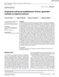 Oviposition and larval establishment of three ‘generalist’ noctuids on Capsicum annuumExport / Share PlumX Volp, T., Quade, A., Zalucki, M. P. and Miles, M. (2026) Oviposition and larval establishment of three ‘generalist’ noctuids on Capsicum annuum. Austral Entomology, 65 (1). https://doi.org/10.1111/aen.70058