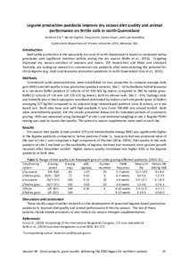 Legume production paddocks improve dry season diet quality and animal performance on fertile soils in north QueenslandExport / Share Cox, K. G., English, B. H., Lemin, C., Dayes, S. and Bambling, L. R. Legume production paddocks improve dry season diet quality and animal performance on fertile soils in north Queensland. In: 2026 NBRUC conference handbook : Proceedings of the Northern Beef Research Update Conference.