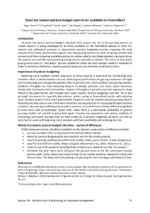 Organisation URL: https://dpi.primo.exlibrisgroup.com/permalink/61DOAAF_INST/1km05pd/alma991000590765605056 AbstractAn excel ‘dry season pasture budget’ calculator (‘dry season’ aka ‘no or low growing season’, or ‘closed season’) is being developed to be freely available on the FutureBeef website in 2026. For tropical and subtropical pastures in Queensland, pasture budgeting involves assessing the total amount of dry matter pasture that is grown over the growing season (i.e. parts of spring, summer and autumn) and then comparing available pasture dry matter yield to stock feed demand, aiming to ration the pasture out until the next pasture growing season, typically in summer. The aim is to also retain good ground cover of “rain ready” pasture stubble for when the next summer rainfall is expected in order to maximise infiltration, improve pasture response and minimise runoff and soil loss.